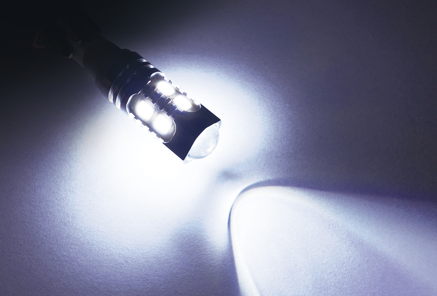 ●明るさ、白さ抜群!高輝度SMDチップLED搭載。 ●耐久性抜群。アルミ製ヒートシンク採用。 ●リフレクター反射効率アップ!面発光タイプ。 ●無極性タイプ ●バッテリーに優しい省電力。 ●ハイブリッド車/アイドリングストップ車/EV車対応