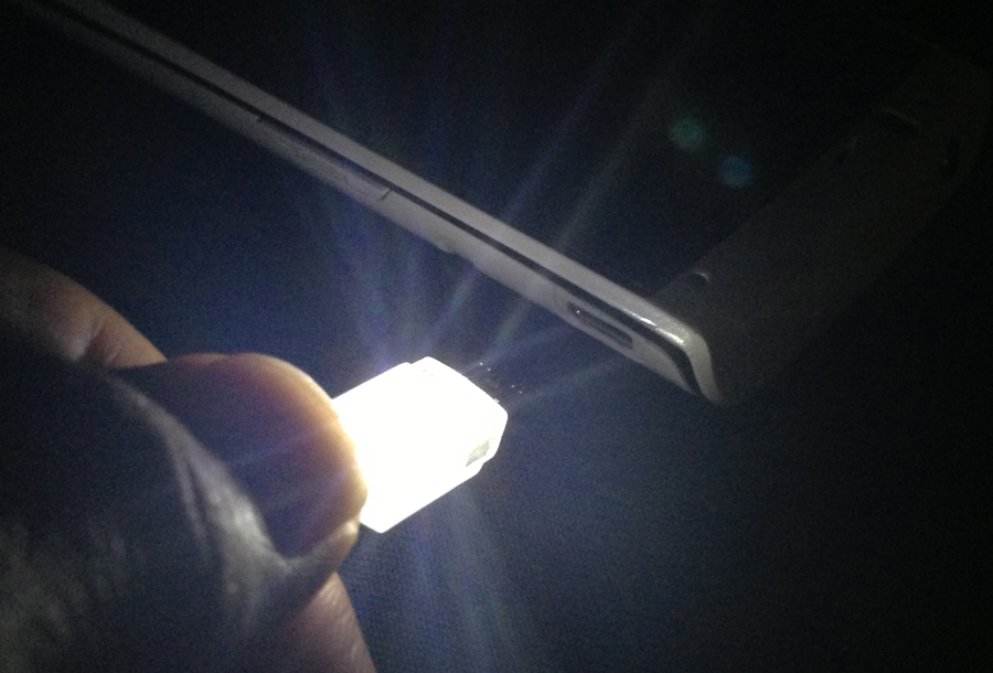 ●タッチセンサー内蔵でコネクタ部分を触ると発光します。暗い場所での差込にとっても便利。