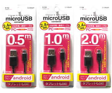 ケーブル: 2.4A対応 ケーブル長: ストレート 0.5m, 1.0m, 2.0m 仕様: 充電/通信 コード部: MicroUSB