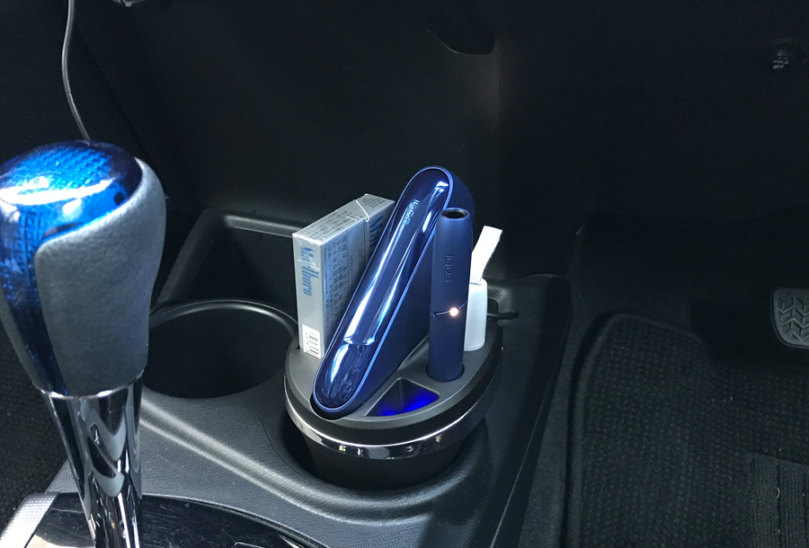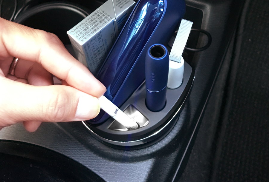 ●通電LEDライトが、ヒートスティック吸殻入れの位置を照らす。