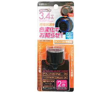 X-210 ブラック LED INDICATOR USB 2PORT CHARGER