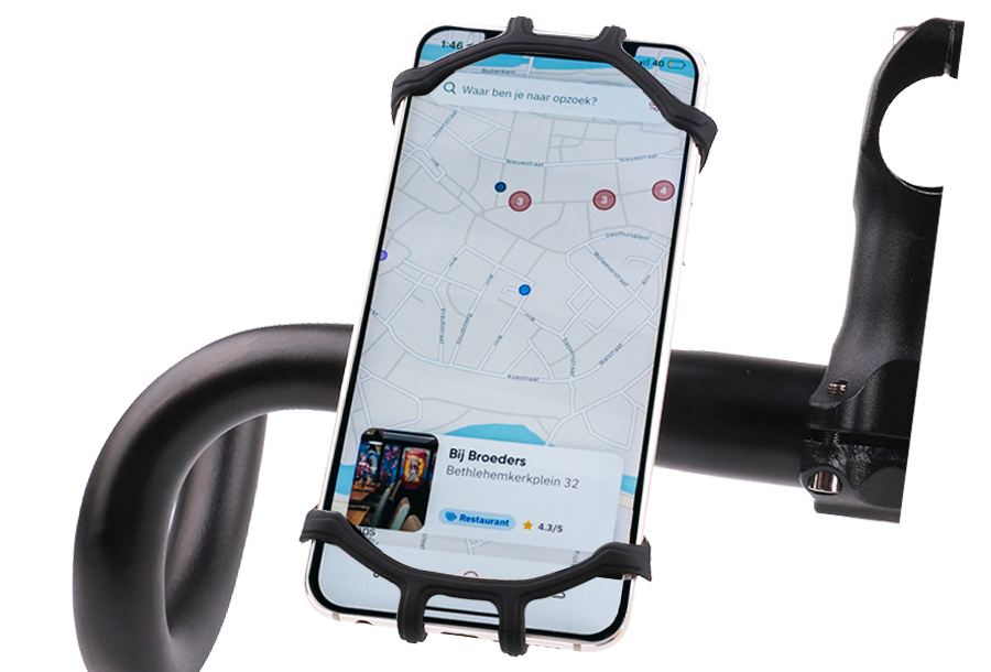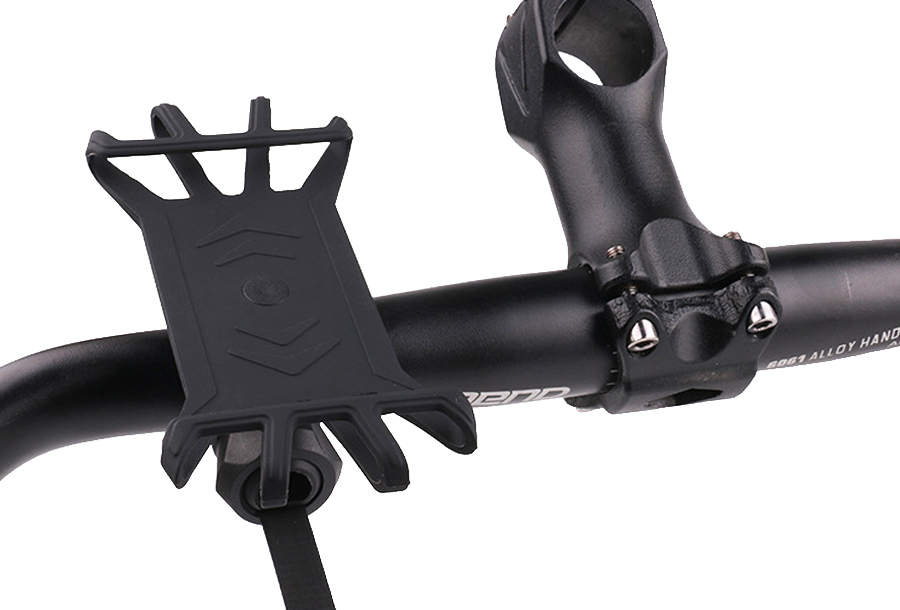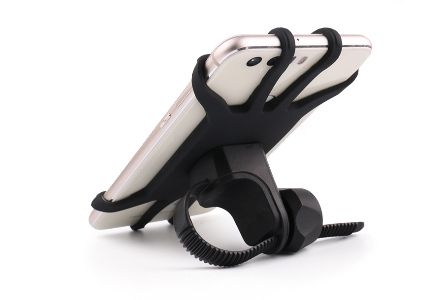 ●耐久性に優れたコーティングシリコン素材で4〜7インチサイズのスマートフォンに使用できるバイク、自転車、ベビーカー用ホルダー。