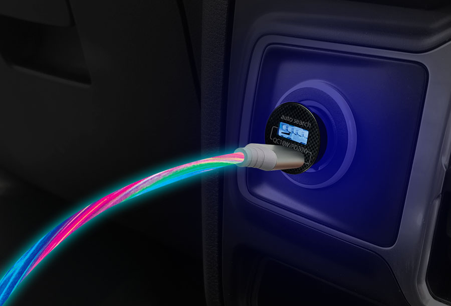●本製品は接続機器と充電器に接続するとケーブル部が流れるように発光します。