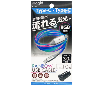 X-326 RAINBOW USB CABLE CtoC + CHARGER C+A