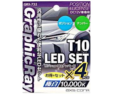 仕様 ・T10ポジション DC12V車専用 SMDタイプ 10000ケルビン 23ルーメン/1個 ・T10ナンバー DC12V車専用 SMDタイプ 10000ケルビン 30ルーメン/1個 備考 ●本製品は12V車専用です。その他の車種には使用しないでください。 (トラック/24V車・外車・二輪等) ●保安基準などの自動車関連法に抵触しないようにご使用ください。