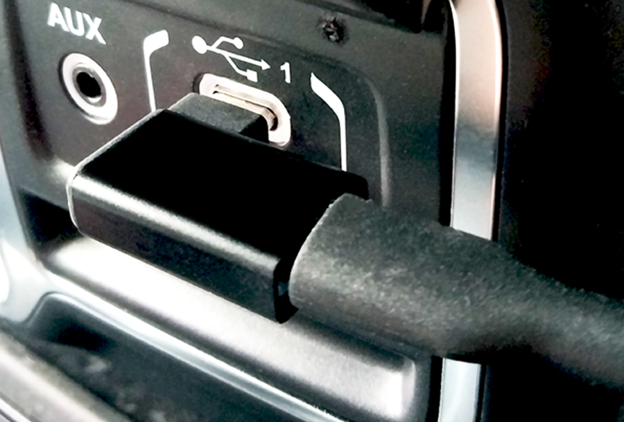 ●車で使用する場合はクルマのエンジンを始動してから、USBポートに挿しこんでください。