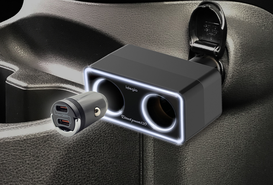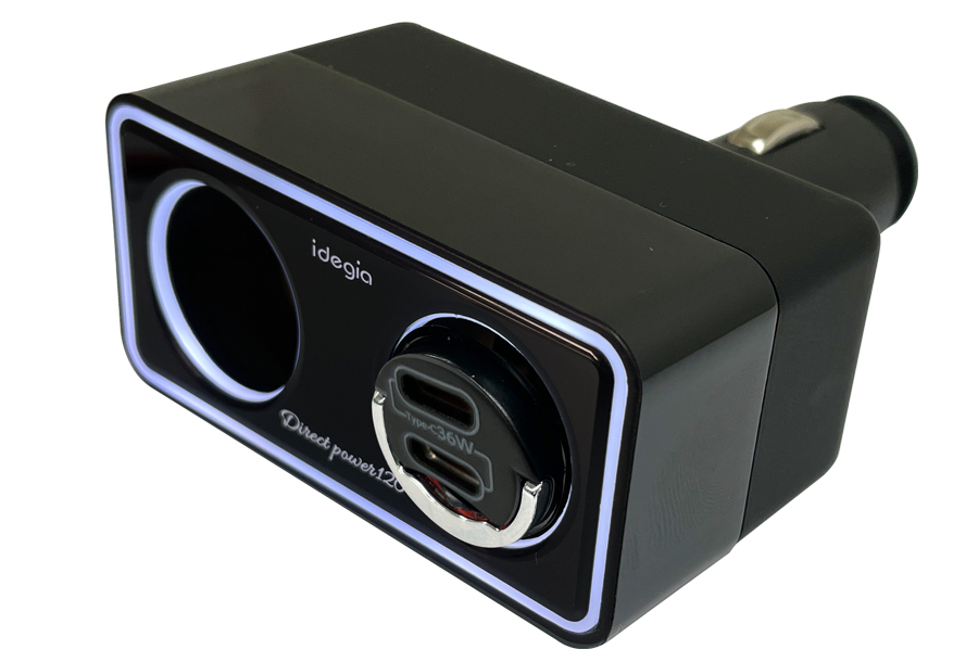 ●DC12V/24V兼用2ポートカーソケット+専用Type-C/Type-C コンパクトUSB充電器つき