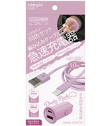 X-359 ダスティーピンク Kusumi color Charger C+A USB-A/Type-C braid cable
