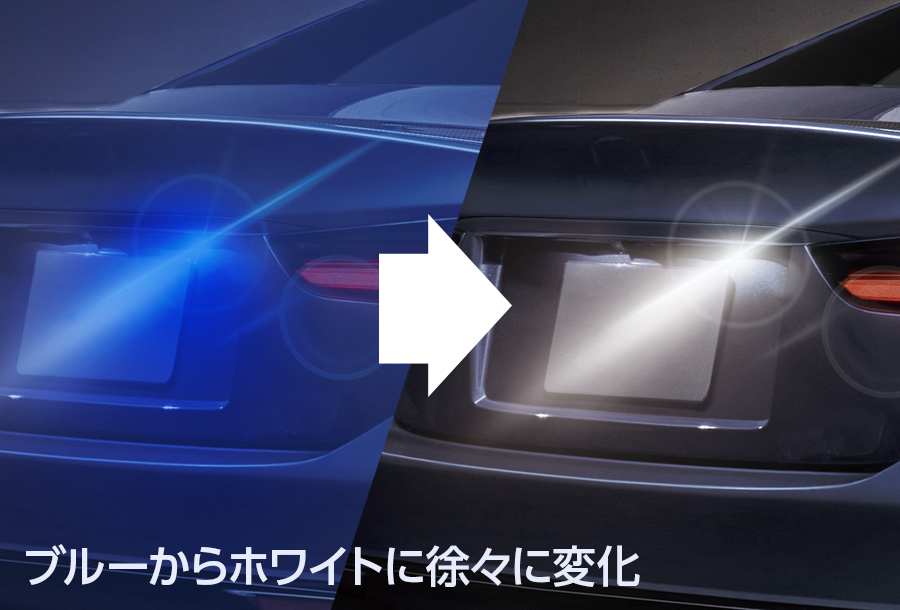 ●ブルーからホワイトに変化するウェルカム仕様 ●耐久性に優れたLEDバルブを採用。 ●LEDバルブ採用で透明感のある発光。 ●バッテリーに優しい省電力 ●バックランプ専用。
