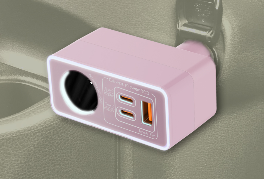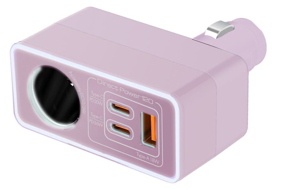 ●3USB(Type-C×2(PD)+USB-A(QC etc))で様々なデバイスが同時に充電できる。DC12V/24V兼用カーソケット付き